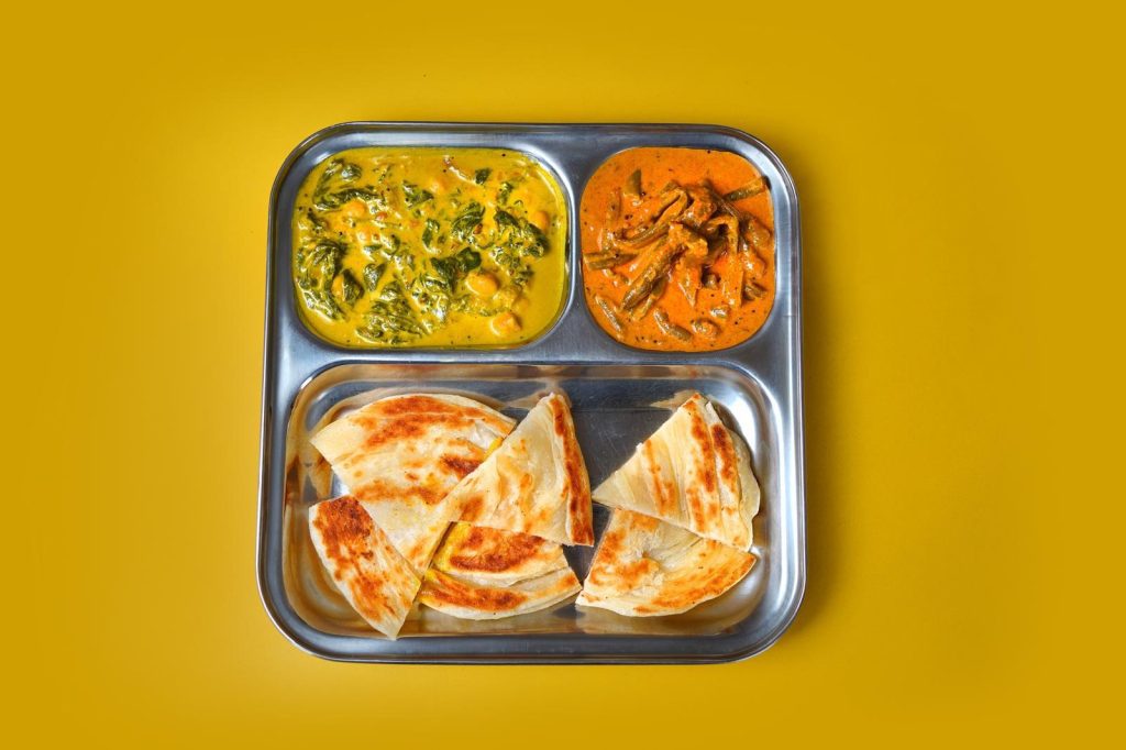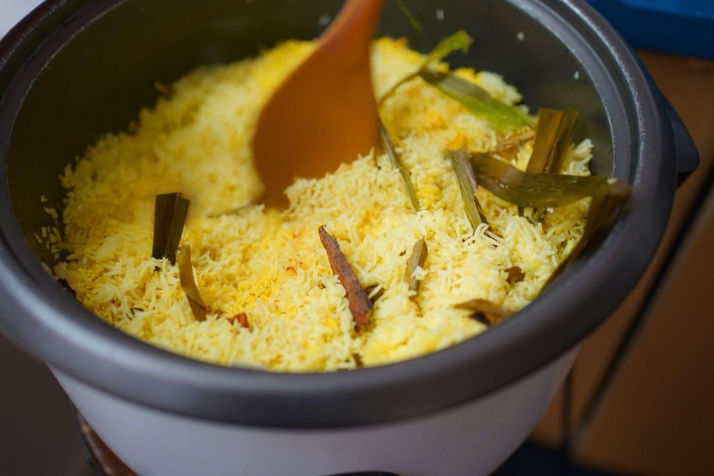 Thali curries and basmati rice (cooked in turmeric powder, with cinnamon stick cardamom, fennel seeds and cloves)